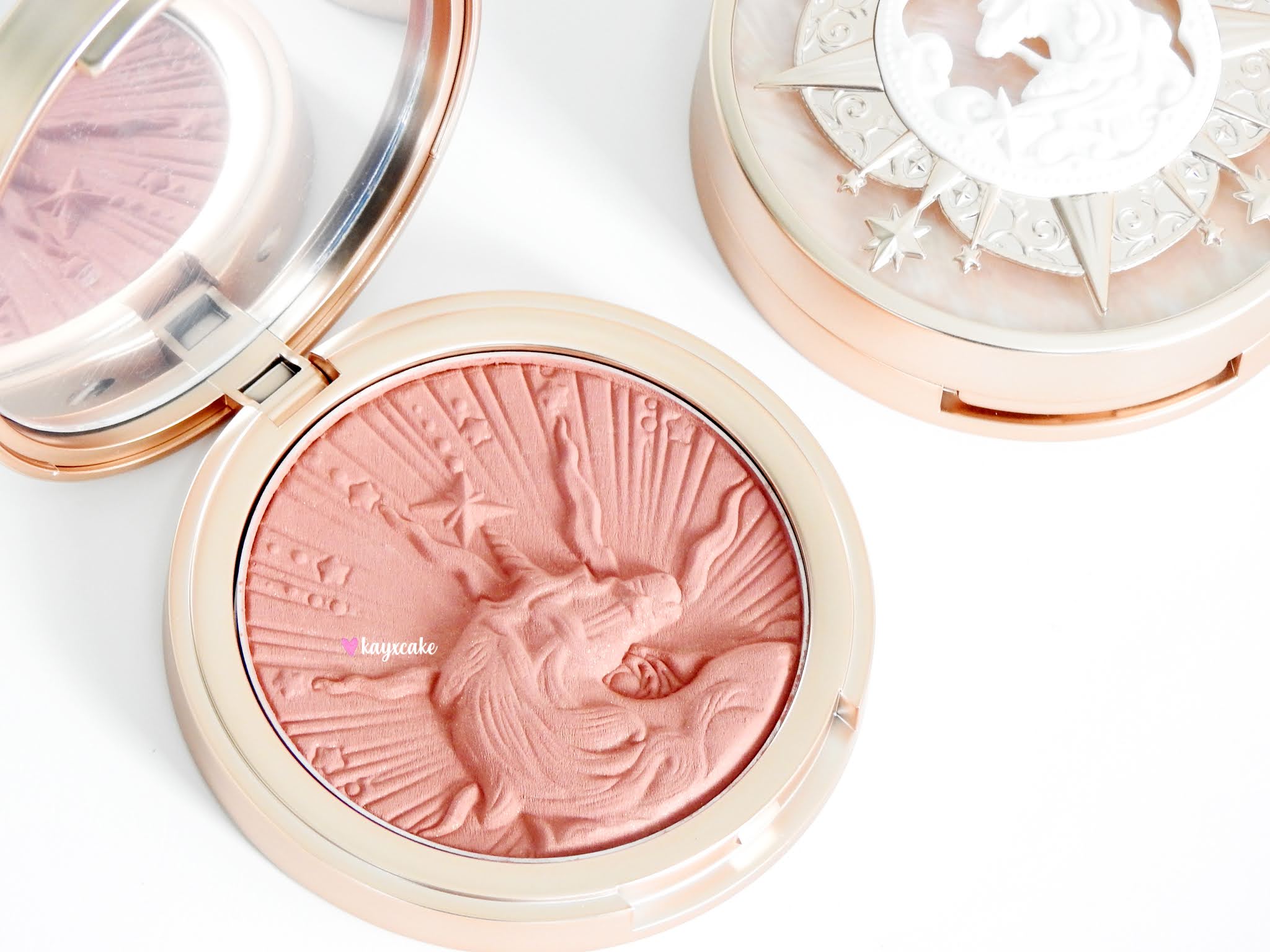 Flower Knows has so far released two unicorn collections, the original and the 2.0 and the one I am sharing with you is the original collection. From what I have gathered, the unicorn collection is a collaboration between Flower Knows and Pretty Rock Baby (a Lolita clothing brand) and the collection includes a loose powder, four eyeshadow palettes, six blushes, six tinted lip gloss, a mirror and a headband.